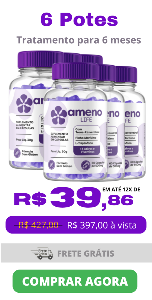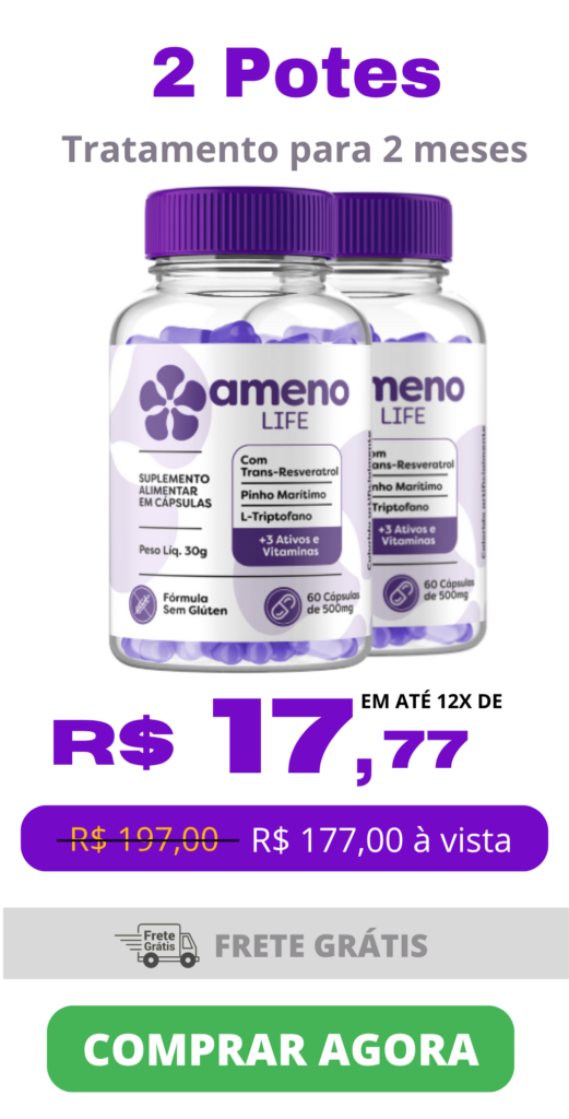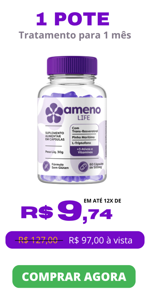O Ameno Life é um suplemento alimentar desenvolvido especialmente para auxiliar mulheres na fase da menopausa. Sua fórmula combina ativos naturais e vitaminas que ajudam a aliviar sintomas como ondas de calor, alterações de humor, ansiedade, cansaço e dificuldades no sono.